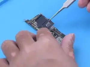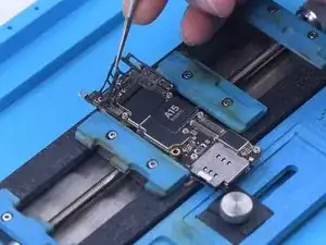 Добавьте нагрев горячим феном на 330 °C вокруг платы, когда температура на нагревательной платформе достигает 150 °C. Когда логическая плата ослабнет, снимите её пинцетом.