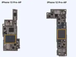 Материнская плата iPhone 13 Pro спроектирована более компактно, чтобы освободить больше места для аккумулятора. Кроме того, плата больше не использует L-образную конструкцию.
