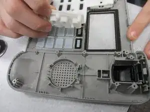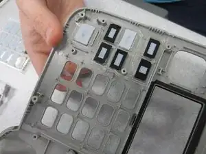 Извлеките резиновую прокладку клавиатуры из верхней крышки.