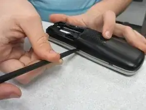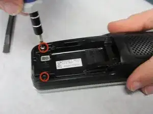 Сдвиньте крышку батареи с трубки и отключите батарею.