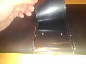 Подденьте (резаком или ножом) и аккуратно снимите клейкую ленту, чтобы получить доступ к 4 скрытым винтам. Снимите все 4 винта.