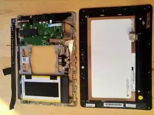 Поместите весь блок в печь и нагрейте до 70–80 градусов Цельсия, чтобы размягчить (расплавить) клей. Начните с одного края, аккуратно приподнимите ЖК-панель и снимите её, не сгибая слишком сильно.