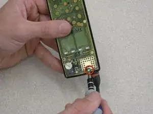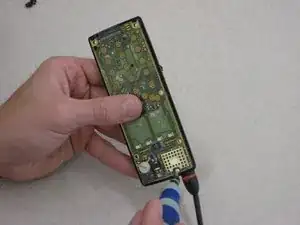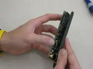 Держа одну руку на печатной плате, а другую на корпусе телефона, аккуратно отделите печатную плату от передней панели корпуса.