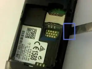 Снимите пластиковую заднюю крышку, чтобы получить доступ к батарее. Используйте ноготь, чтобы поднять батарею с верхней стороны. Под ней вы увидите слот для SIM-карты.