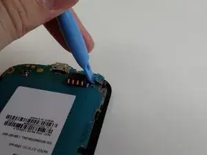 Снимите корпус с телефона, используя синий пластиковый инструмент для открывания.