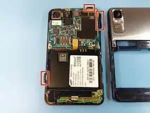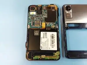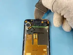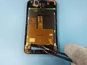 Модуль камеры прикреплён к рамке клеем. Разделите их, поддев модуль инструментом Джимми.