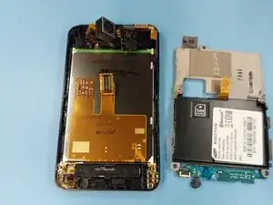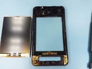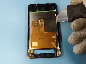 Снимите дисплей, поддев его инструментом Джимми между рамкой и дисплеем.