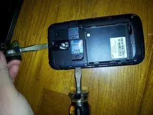 Вставьте плоскую отвёртку в боковую часть телефона и подденьте заднюю панель.