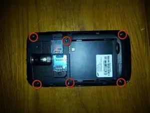 Удалите 6 винтов, крепящих заднюю панель к рамке телефона.
