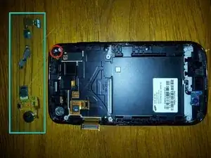 Выкрутите последний винт в верхнем правом углу, который удерживает фронтальную камеру.
