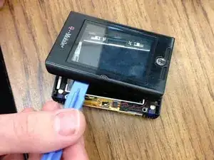 Используйте пластиковый инструмент для открытия, чтобы поддеть защитный экран от основной части экрана.