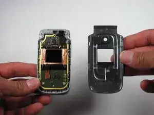 Отложите верхнее покрытие в сторону, как только оно полностью отсоединится от телефона.