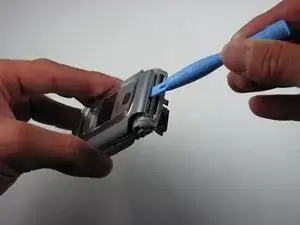 Вставьте инструмент для открытия iPod между основанием телефона и аккумулятором.