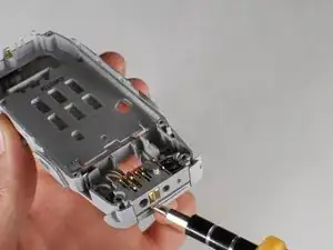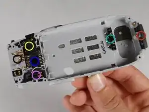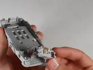 Мы теперь разберём внутренности телефона, включая считыватель SIM-карт, вибромотор, кнопку включения, динамик, блок питания/микрофон и разъём батареи.