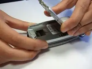 Используйте пластиковый инструмент, чтобы разделить переднюю и заднюю части корпуса.