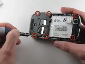 Удалите шесть винтов Torx T4 длиной 4,0 мм, расположенных по краю задней части телефона.