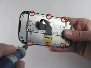 Снимите шесть винтов T4 Torx длиной 4.0 мм, расположенных по краю задней части телефона.
