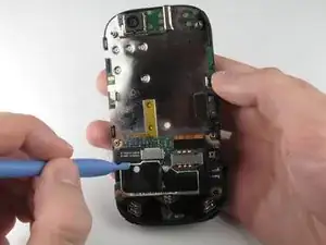 Подденьте пластиковым инструментом чёрный разъём дисплея и отожмите его из разъёма на материнской плате.