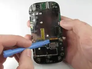 Подденьте пластиковым инструментом крышку, закрывающую камеру, приподнимите её и снимите пальцами.