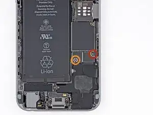 Уберите металлическое крепление разъема аккумулятора из iPhone.