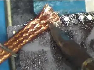 Припаяйте задние контакты паяльником, чтобы зафиксировать разъём. Разровняйте избыточный оловянный слой оплеткой для припоя. Пожалуйста, не удаляйте припой, таща оплетку. Очистите контакты средством для печатных плат.