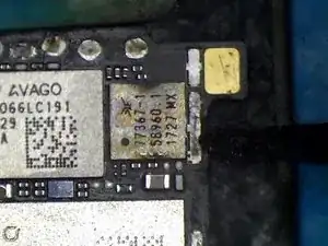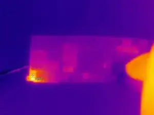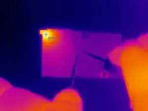 Продолжайте проверять область разъёма тепловизором. Температура в этой области заметно изменилась. По битмапу видно, что нагревается GSM. Следовательно, требуется заменить GSM.