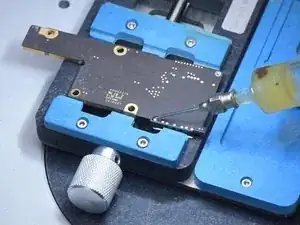 Продолжайте наносить низкотемпературную паяльную пасту на контакты разъёма для карты.