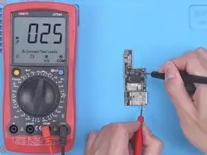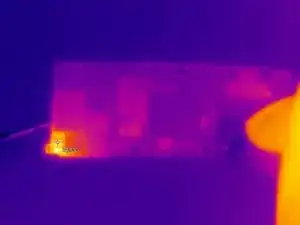 Затем измеряем PP_VDD_Main. Значение сопротивления 29, что относительно мало. Это указывает на повреждённый компонент в цепи PP_VDD_Main. Поскольку ток небольшой, при обнаружении по флюсу найти неисправную часть не удаётся. Поэтому необходимо использовать тепловизор для поиска неисправного компонента.