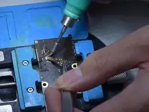 Очистите контакты горячим воздухом и оплеткой для припоя. Затем очистите задние контакты паяльником и оплеткой для припоя.