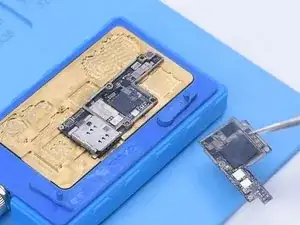 Далее разделяем плату для дальнейшего тестирования. Поместите плату на нагревательную платформу для разогрева. Когда температура достигнет 165 °C, отделите логическую плату от сигнальной платы.