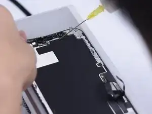 Удалите излишки клея в области гибкого кабеля динамика.