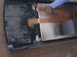 Осторожно отклейте шлейф от задней стороны экрана. Он прикреплен с помощью двухсторон