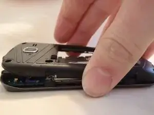 Снимите аккумулятор, сняв заднюю крышку и выдавив аккумулятор наружу.