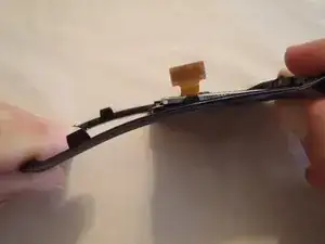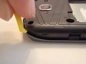 По периметру ЖК-дисплея имеется клей. Он прикрепляет дисплей к рамке. Возьмите фен и установите высокую температуру. Пройдитесь по краю дисплея в общей сложности примерно шестьдесят секунд. Затем слегка согните рамку вниз, удерживая верхнюю часть, и извлеките дисплей.