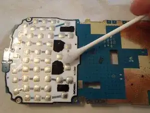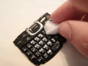 Мой телефон побывал в стиральной машине. Из-за этого под пластиком и ЖК-экраном остался мыльный налёт. Возьмите ватный тампон или шарик (на ваш выбор, но только для этого шага!) и очистите пластик и клавиатуру.