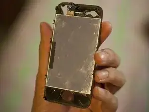 Я получил этот повреждённый экран iPhone 4 от местного мастера. Он отдал его мне бесплатно, так как он ему не нужен.