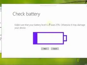 Аккумулятор должен быть заряжен как минимум на 25%.