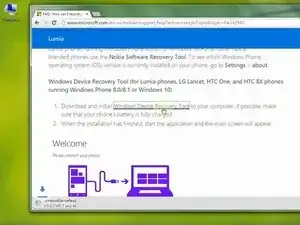 Страница инструмента восстановления Windows Phone