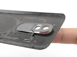 Это обнажит кольцо клея вокруг отверстия, которое будет удерживать заднюю пластину камеры на месте.