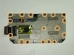 Удалите 17 пластиковых заклёпок, чтобы разделить плату и клавиатуру.