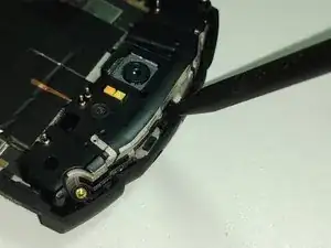 Вставьте медиатор для вскрытия в щель между корпусом и задней панелью. Затем разомкните щель так, чтобы защёлка вышла.