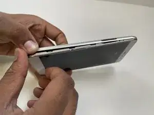 Вставьте большой палец между задней панелью и передней частью телефона и медленно проведите по краям, чтобы отделить две части