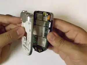Одновременно потяните за обе стороны телефона, переднюю и заднюю, в противоположные направления. Это снимет заднюю крышку и откроет доступ к материнской плате.