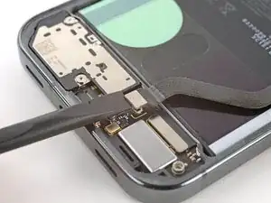 Используйте пинцет, чтобы сдвинуть крышку к центру телефона, отщёлкнув защёлки, и снимите её.
