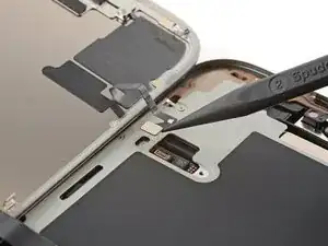 Используйте кончик лопатки, чтобы поддеть и отсоединить пресс-разъём дисплея.