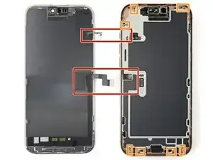 Используйте трёхлучевой отвёртку Y000, чтобы убрать два винта длиной 1.3 мм, фиксирующих крышки разъёмов переднего датчика и дисплея.