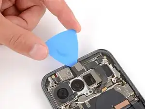Используйте кончик рашпиля для вскрытия, чтобы осторожно поддеть переднюю камеру за верхний край и извлечь её.