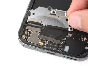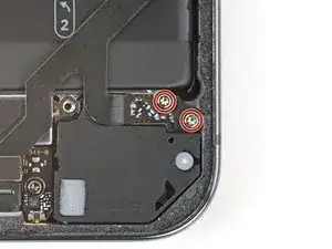 Используйте отвертку Torx Plus 3IP, чтобы удалить два винта длиной 4,3 мм, крепящие крышку платы зарядки.