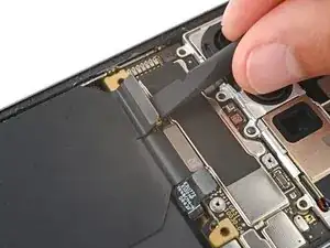 Вставьте наконечник лопатки под правый край защёлкивающегося разъёма аккумулятора и отожмите прямо вверх, чтобы отсоединить его.