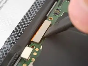 Аккуратно извлеките слой поролоновой клейкой ленты с краёв нижней стороны динамика разговорного динамика, используя пинцет.